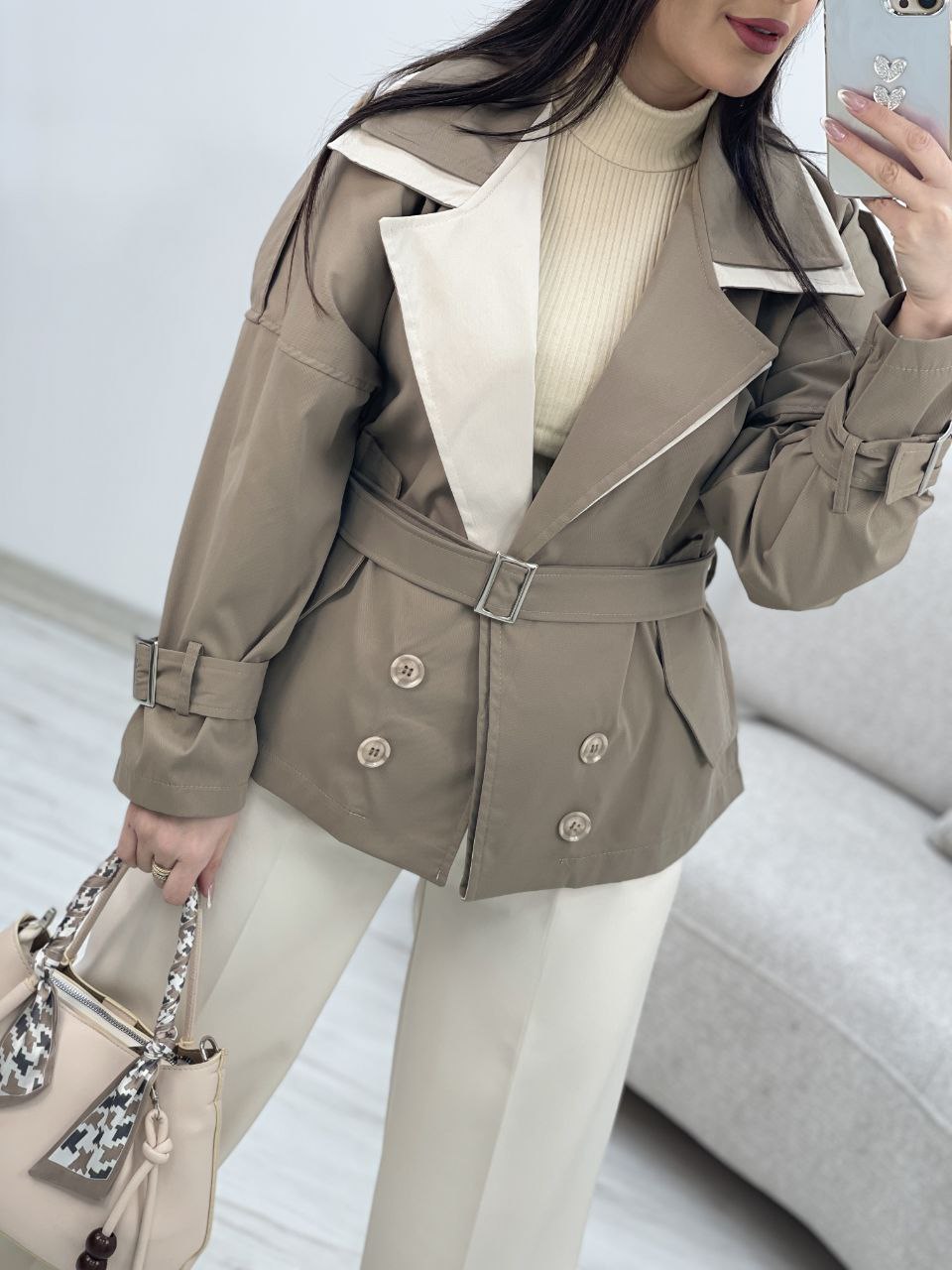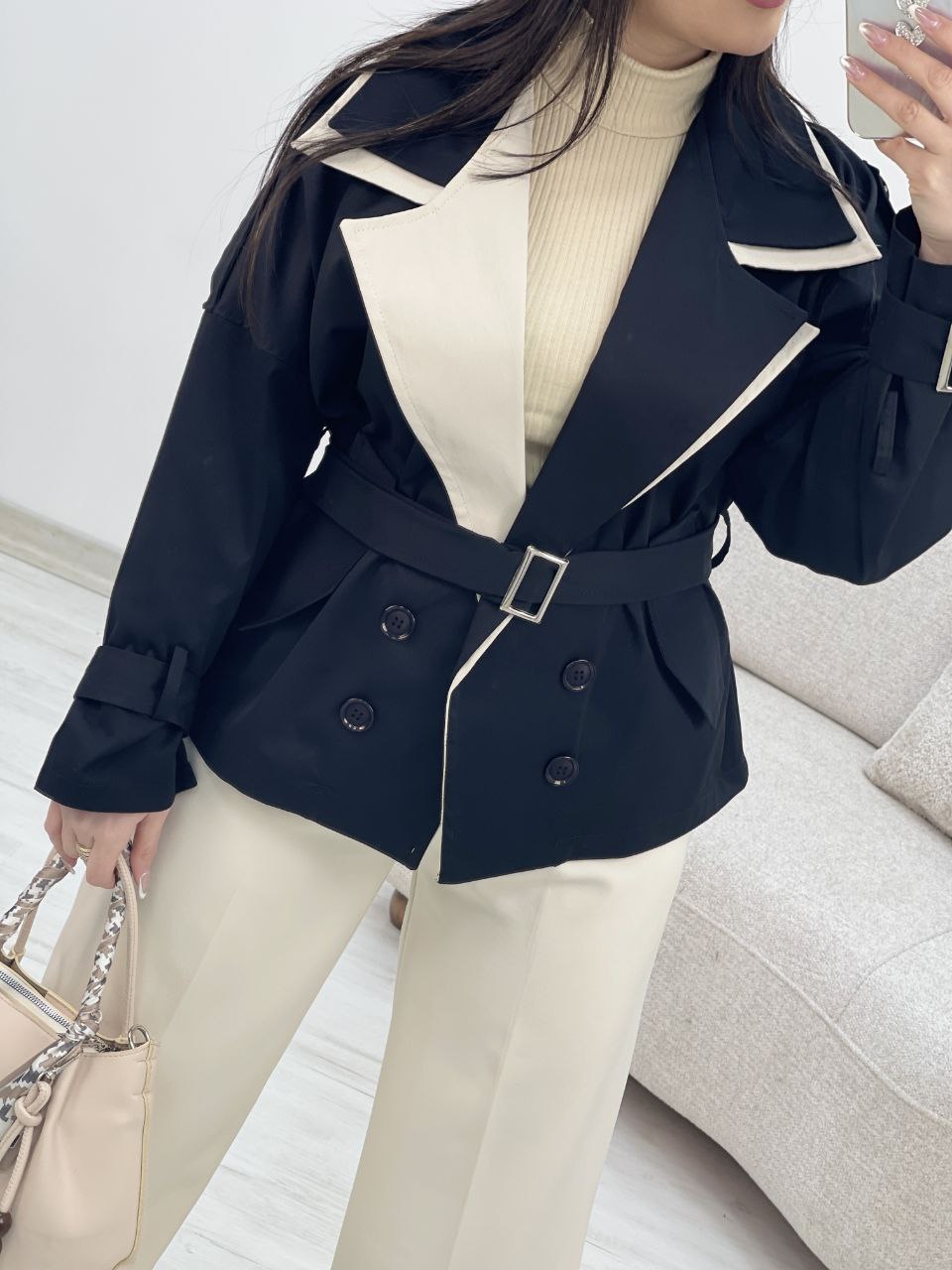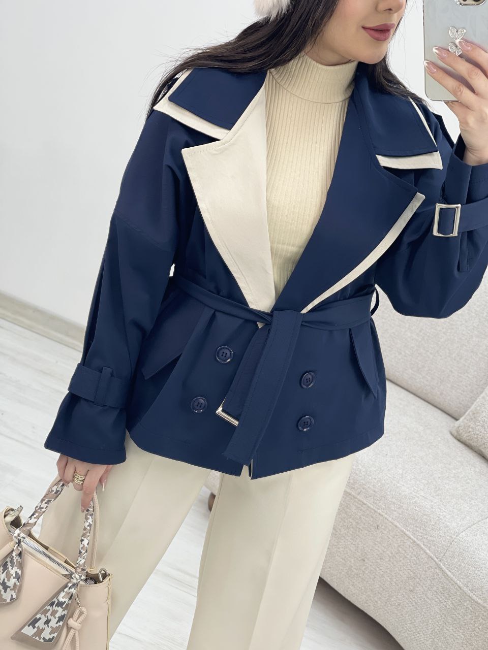 دستهبندی: کت و مانتو زنانهجنس: کتانقد: حدود ۶۵ سانتیمترقد آستین: از یقه ۶۸ سانتیمتردور بازو: ۵۰ سانتیمتردور سینه : ۱۲۸ سانتیمترسایز : فری سایز مناسب ۳۸ تا ۴۶نمایش بیشتر