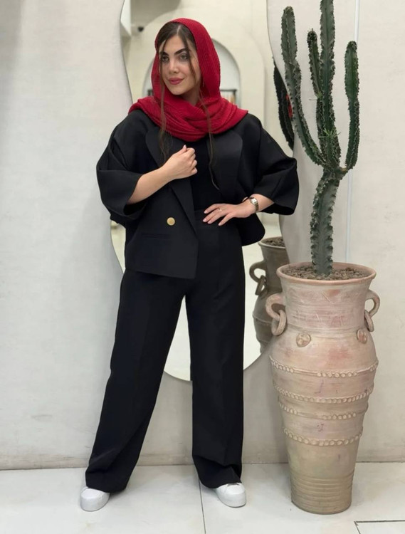 جزئیات: مدل شلوار بگ میباشد، پشت کمر شلوار کش میباشد، لایه پرشین کار شده است، کت فری سایز میباشد