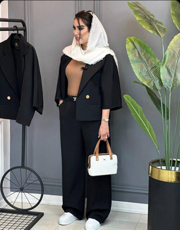 مدل شلوار بگ میباشد، پشت کمر شلوار کش میباشد، لایه پرشین کار شده است، کت فری سایز میباشد
