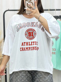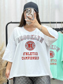 تیشرت باکسی قوارهدار پنبه سوپر بروکلین فری سایز